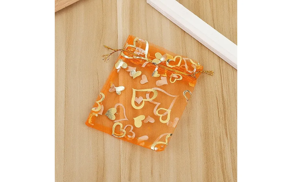 Rectangle organza drawstring gift bags, gold stamping heart pouches for wedding party gift storage, dark orange size: about 3.54 Inch 9cm wide, 4.72 Inch 12cm...show more