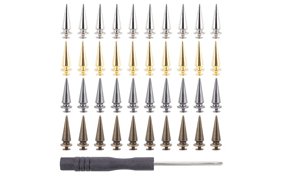 Alloy spikes screwback studs, with screw, iron screwdriver, mixed color size: alloy spikes screwback studs: finished product: about 27x10mm stud: 25.5X10mm, 1pc, screw: 6.5X5.5Mm, 1pc,...show more