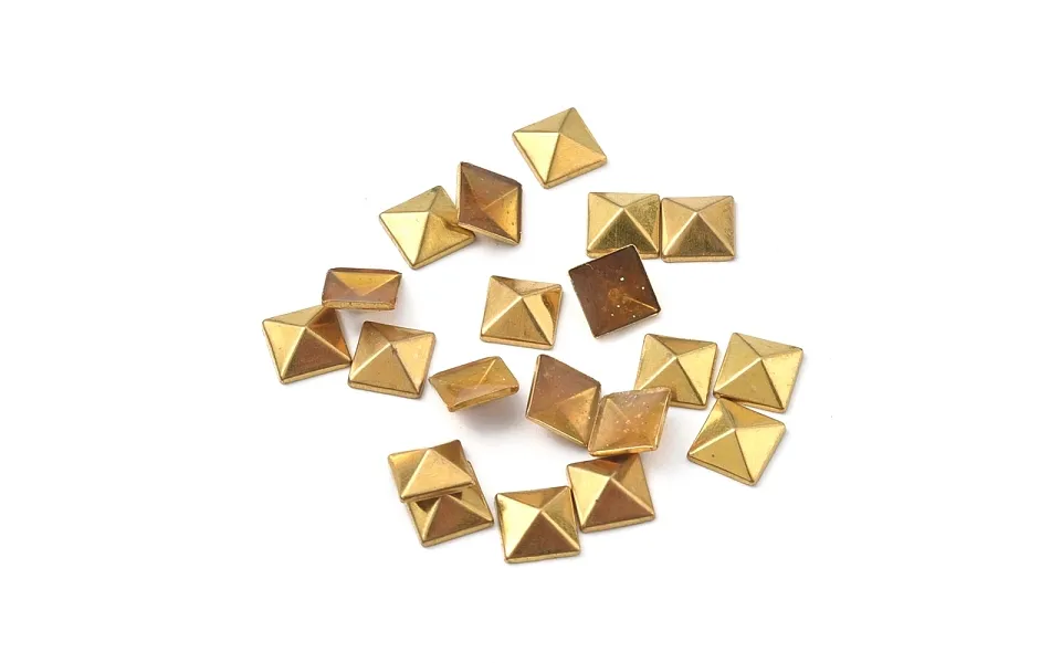 Brass hotfix iron on rivets, flat back pyramid studs, flatback glue on studs, golden size: about 6mm wide, 6mm long, 2.3Mm thick about 10000pcs bag....show more