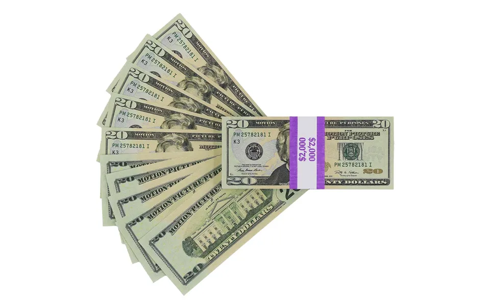 Our 2,000 full print new series prop money stack is comprised of one hundred 20 double-sided bills, offering unmatched quality and detail. Each bill is...show more