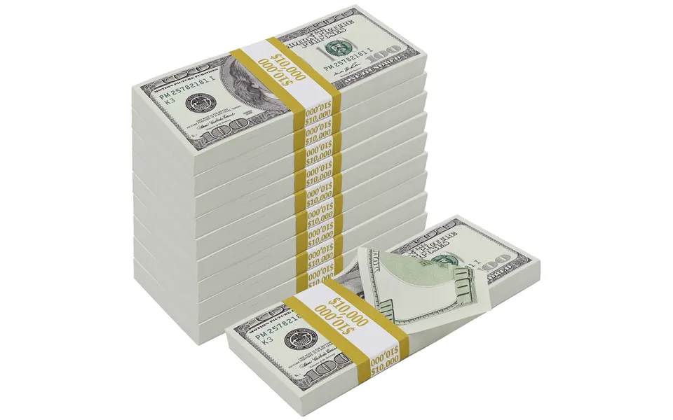 Create realistic money scenes with this 2000 series prop money. Included are ten 10,000 full print stacks for a total of one thousand 100 bills....show more