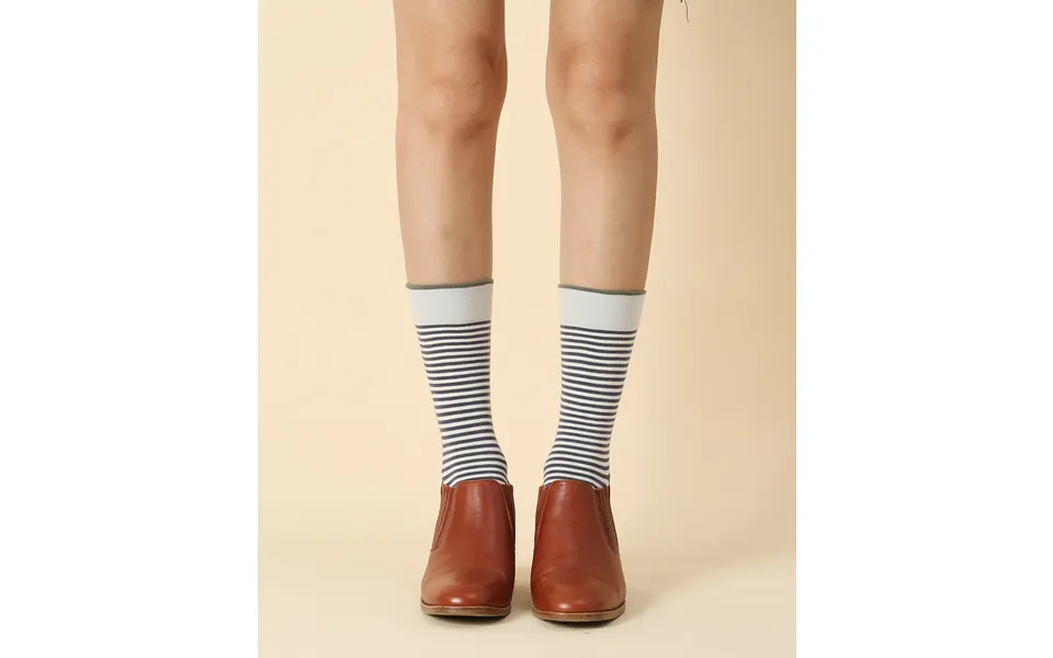 Storm the streets with a pair of these soft, cotton crew socks that have a navy and white bengal-striped design, accented by a matching cuff,...show more