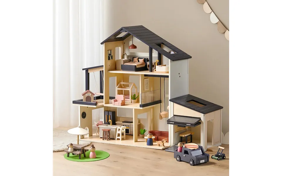 Two worlds, one incredible play experiencebring together the elegance of the tiny land sweetwood edge dollhouse and the adventure of the tiny land wooden dollhouse garage for a complete, lifelike play universe. From hosting cozy family dinners to hitting the road for a surf trip, this bundle unlocks limitless storytelling possibilities. Modern living, miniature stylesleek architecture, modern furniture, and detailed accessories make the sweetwood edge dollhouse a stylish space for creative storytelling. Multiple interactive rooms invite kids to design, decorate, and bring their own family stories to life. Garage adventures & outdoor funthe wooden dollhouse garage features a flip-up door, workbench, rolling lawnmower, and a roomy suv with smooth wheels and a surfboard. Perfect for pretend repairs, lawn care, or loading up for an imaginative road trip. Educational, engaging, and built to lastcrafted from high-quality, eco-friendly wood with non-toxic finishes, every piece is safe, durable, and beautifully detailed. This bundle fosters fine motor skills, problem-solving, and social play while inspiring boundless creativity. Perfect for solo or shared playideal for siblings and friends, the dollhouse and garage can be enjoyed separately or combined for an expanded play world. Fits seamlessly with other tiny land 1:12 scale sets. Why choose this bundle complete play world combines indoor family life with outdoor garage adventures. Realistic details from modern furniture to a w...