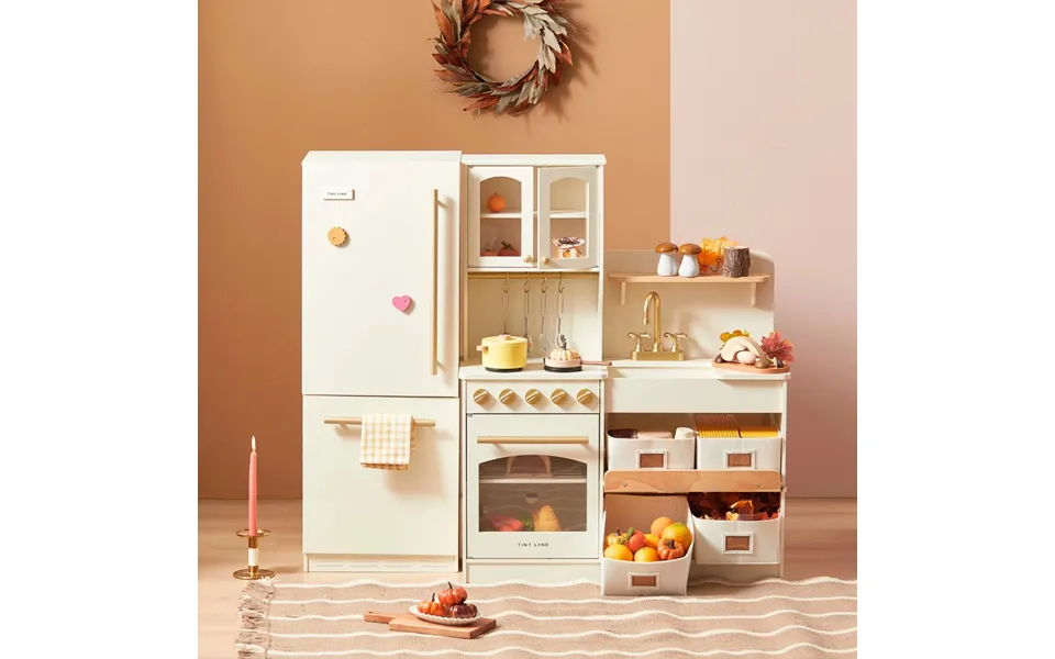 A warm, home-style kitchen set overflowing with ingredients. Little chefs can reach food everywhere from the fridge to kitchen drawers sparking hours of imaginative, hands-on play. Perfect for children who love organizing food, arranging ingredients, and creating their own signature dishes. The perfect play kitchen & fridge combo this beautifully designed bundle combines a modern play kitchen and a matching toy fridge, offering realistic role-play and practical storage in one. The soft cream finish with gold accents makes it a stylish addition to any home. Cook, store & playkids can whip up meals with the stove, oven, microwave, and sink, featuring interactive knobs and a rotating faucet. The matching fridge provides space for toy groceries and has magnetic doors, perfect for adding fun magnets or notes. Encourages learning through play sparks creativity inspires role-play and storytelling. Teaches organization helps kids develop tidying habits. Enhances social skills great for cooperative play. Improves fine motor skills engages little hands with interactive features. Safe, durable & parent-approvedmade from non-toxic, child-safe materials, this set is sturdy, long-lasting, and easy to assemble. Why get the bundle this kitchen & fridge combo creates a realistic, organized play space, keeping play areas neat while making pretend cooking even more fun let’s cook, store, and play one adventure at a time