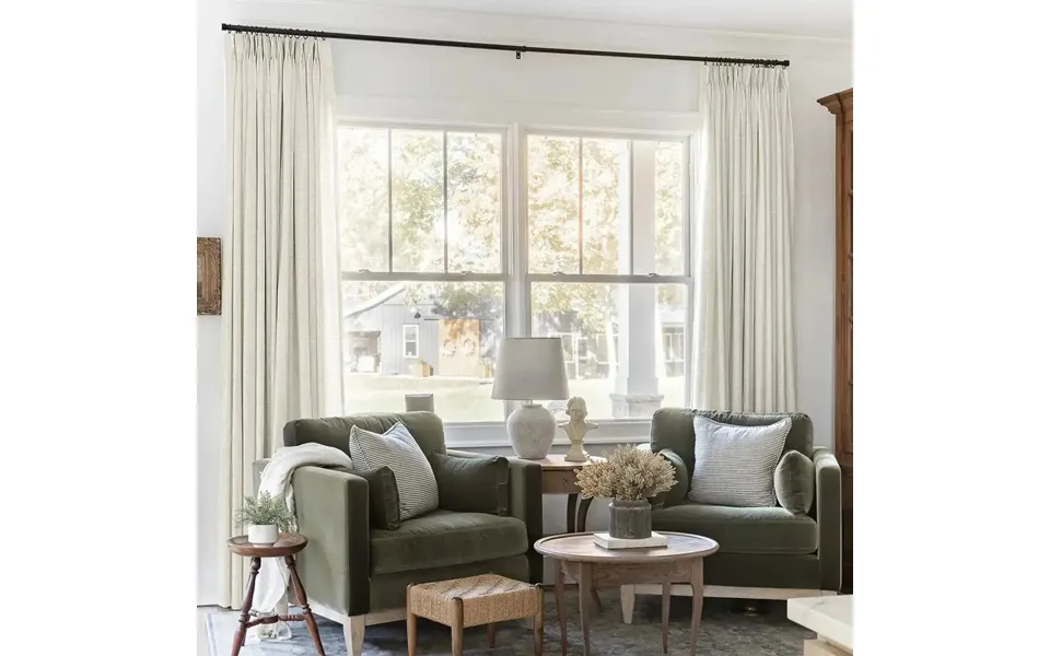Style: ivory white 1908-2 creates warmth, calm, neutrality, softness, elegance, comfort, and luxury in their homes. With their crisp neutral shades, they make your rooms look a lot brighter without compromising privacy. Ready-made curtains. Made of 90% polyester and 10% linen blend. Heavyweight 350 gsm faux linen luxury material. Slub texture, anti-wrinkle, skin eco-friendly, excellent colorfastness. Fabric front and back are with the same texture, same color. Header style: pinch pleat. Curtain hooks included. Curtain rings and rods are not included. Lining type: unlined. Shading rate: 80%. May vary a little with different colors. Fabric width: 112 inches. View our instructions on how to install pinch pleat curtains.