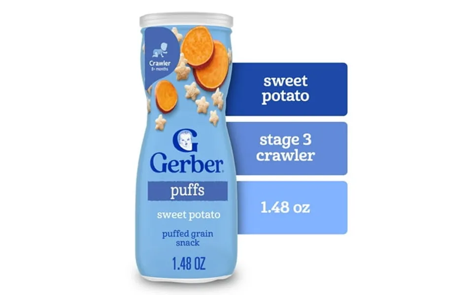 Gerber sweet potato puffs baby snacks are made with wholesome ingredients and strict quality standards just for babies. This baby finger food dissolves easily and...show more