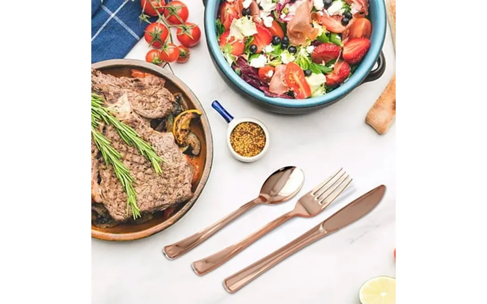 Disposable fork gold birthday party tableware set plastic rose gold party western food gold-plated knife fork spoon features: our rose gold tableware is made of...show more