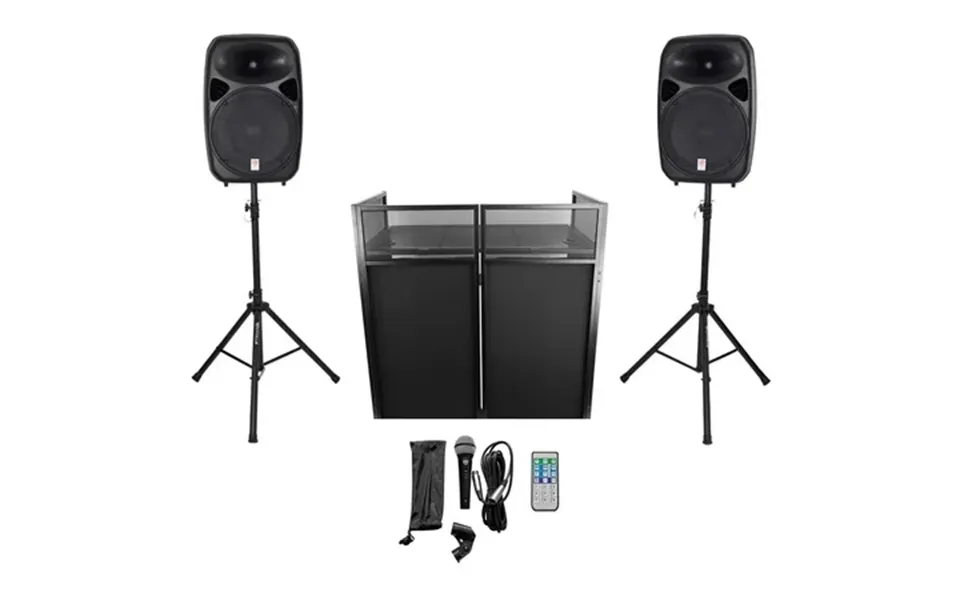 Package includes: 1 rockville rpg152k dual 15 powered speakers bluetooth mic speaker stands cables 1 rockville rockbooth dj event booth facade w built in table...show more