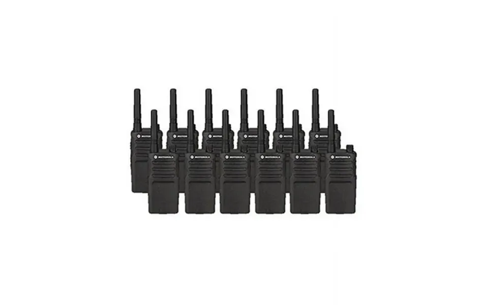 Twelve-pack of motorola rmm2050 radios. Each radio comes complete with a single-unit charger 15 hour lithium ion battery pack swivel belt holster and 1-year warranty. ...show more
