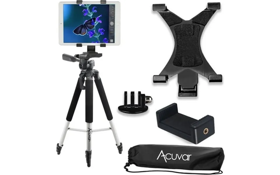Acuvar pro series 57 inch tripod Non-slip feet and a bubble level indicator. Adjustable center pole and comes with a water resistant carrying case. ...show more