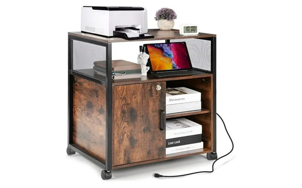 Lateral File Cabinet Locking Office Filing Cabinets With Socket And Usb Charging Port Mobile Printer Table With Wheels F only $ 41.99