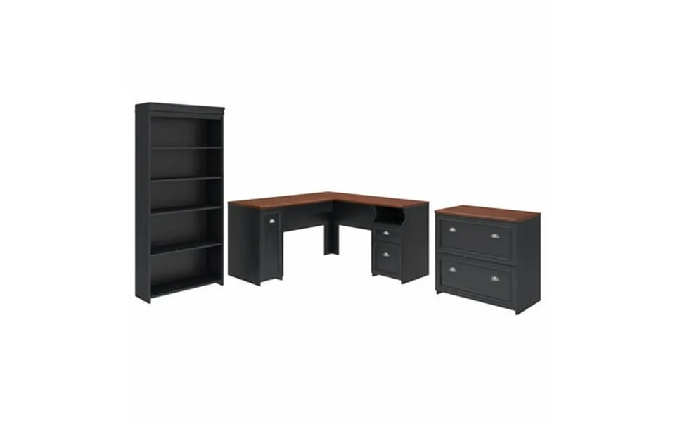 Bring modern farmhouse styling into your home office with the bush furniture fairview l shaped desk with bookcase and lateral file cabinet. Spread out surf...show more