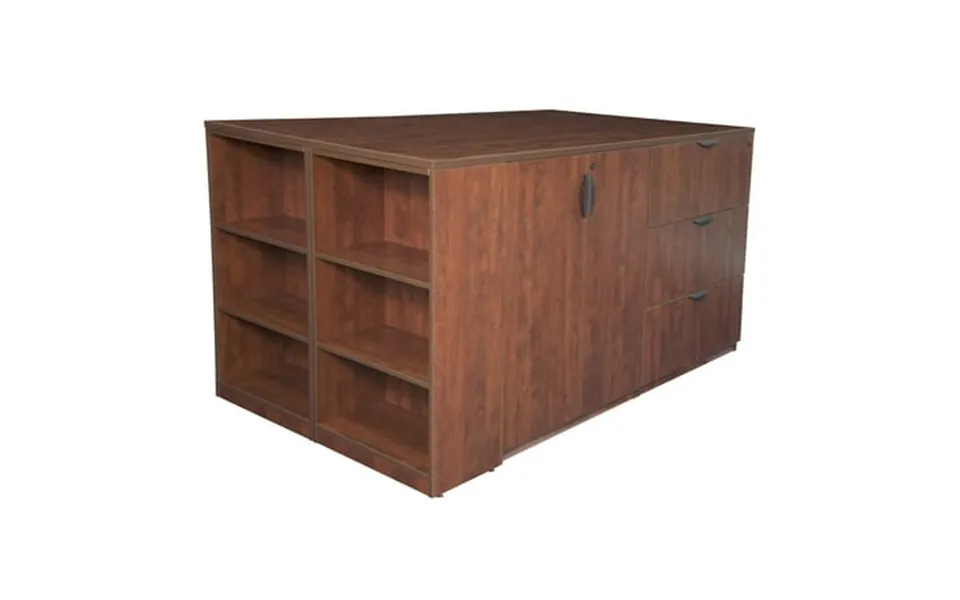 Legacy stand up 2 storage cabinet lateral file desk quad with bookcase end- cherry sit or stand in the comfort of legacy stand up modular...show more