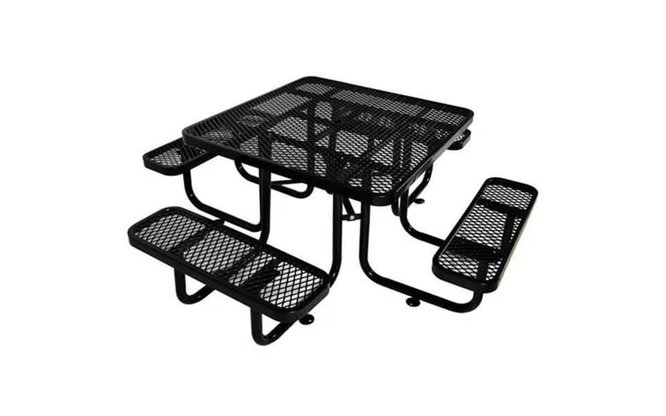 The square outdoor steel picnic table 46 black features heavy-gauge perforated metal with a robust thermoplastic coating ensuring long-lasting durability for all your outdoor activities....show more