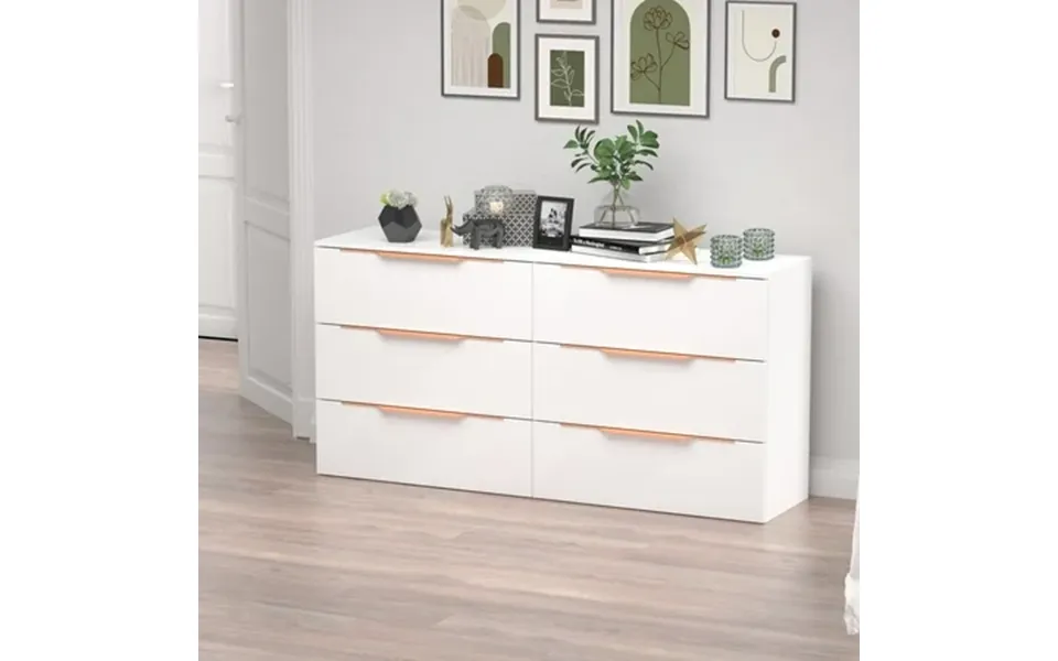 Ideal for understated bedroom arrangements this 6 drawer double dresser showcases a clean-lined silhouette and neutral solid finish that blends in with just about any...show more