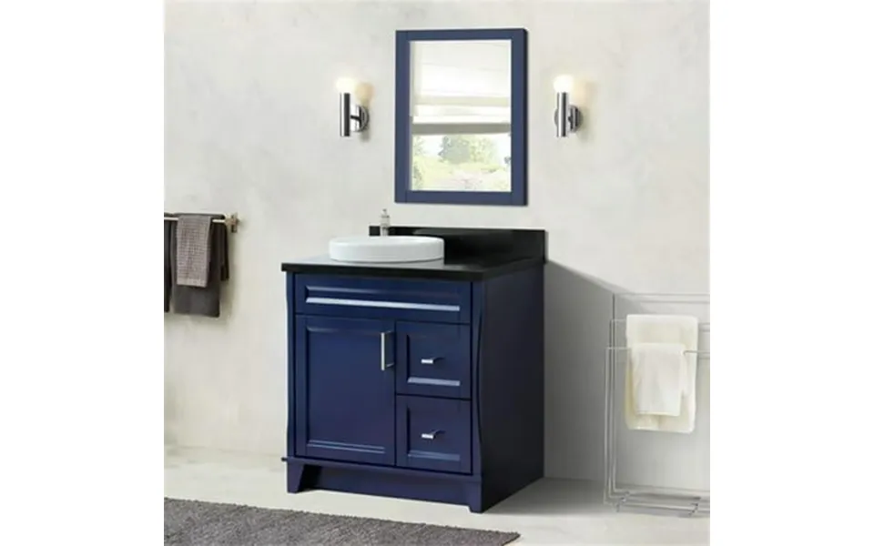Single sink vanity in blue with black galaxy granite and door round sink the terni collection by bellaterra home features simple style bathroom vanities that...show more