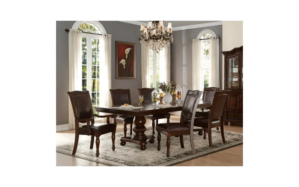 Product description:- elegantly designed for the traditional dining room is this collection. Supported by the double pedestal base is the tabletop where the magnificent parquet...show more