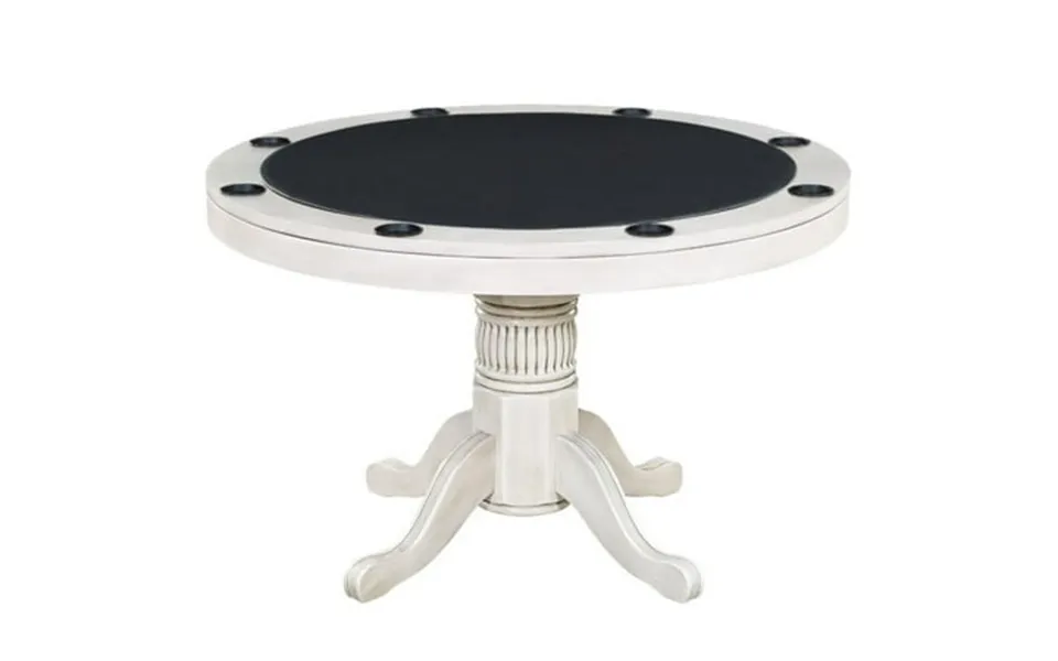 Perfect for everything from blackjack to texas hold em this round gaming table boasts beautiful solid wood construction in a premium antique white finish with...show more