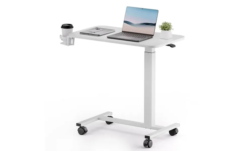 Comhoma adjustable overbed bedside table with lockable wheels 28 x 16 pneumatic mobile standing laptop desk small standing desk portable rolling overbed table hospital home...show more