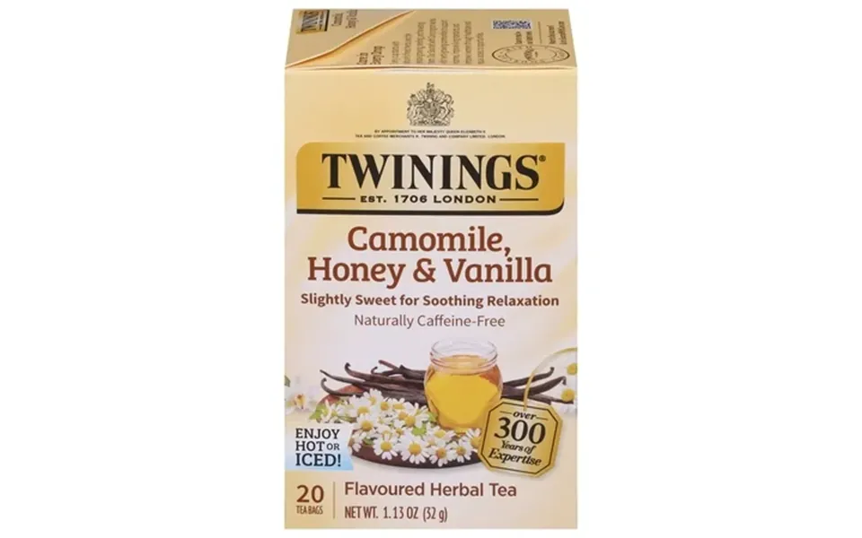 Twinings 20 individually wrapped tea bags herbal tea blend with soothing camomile and sweet honey and vanilla flavours naturally caffiene free twinings camomile honey &...show more