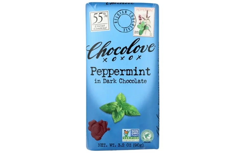 Chocolove peppermint in dark chocolate bar is a 3.2 Oz. Bar of dark semisweet chocolate and natural peppermint oil. Creamy dark chocolate gives way to...show more