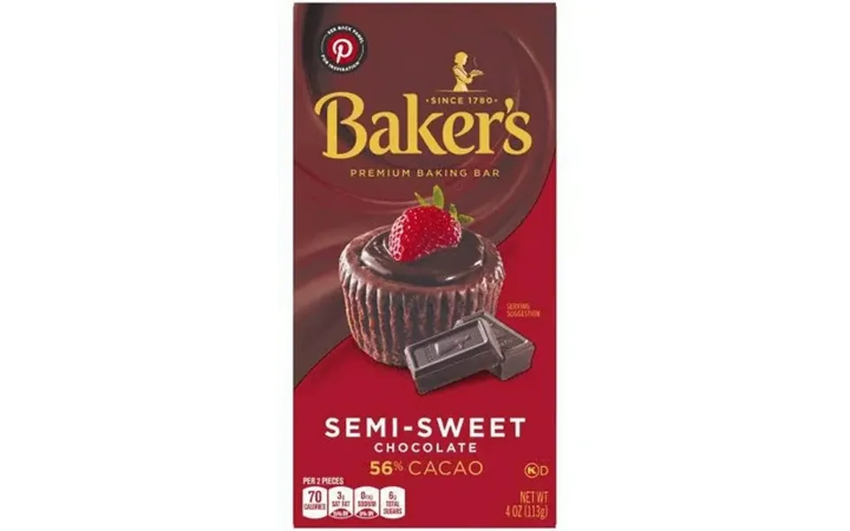 Baker s 56% cacao chocolate bar semi-sweet baking. Since 1780.Premium baking bar. Easy recipes inside.Net wt 4 oz 113g . Brand: Bakers Size: [4 Oz]