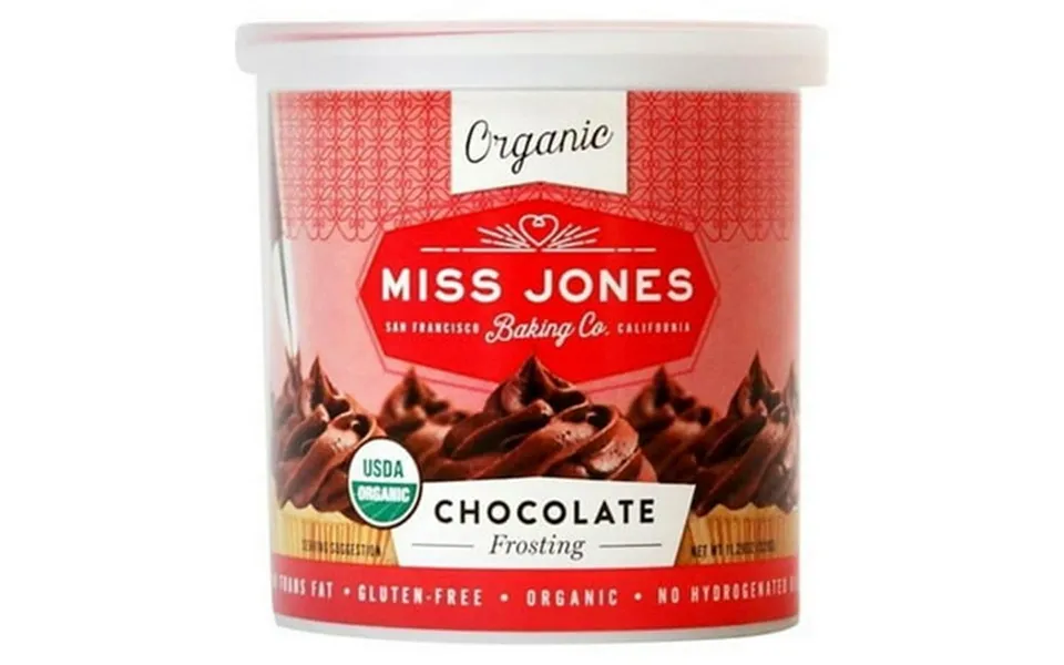Miss jones organic chocolate frosting is certified usda organic and vegan frosting. Each 11.29 Oz. Container has 9 servings of 2 tbs. Each. Our chocolate...show more