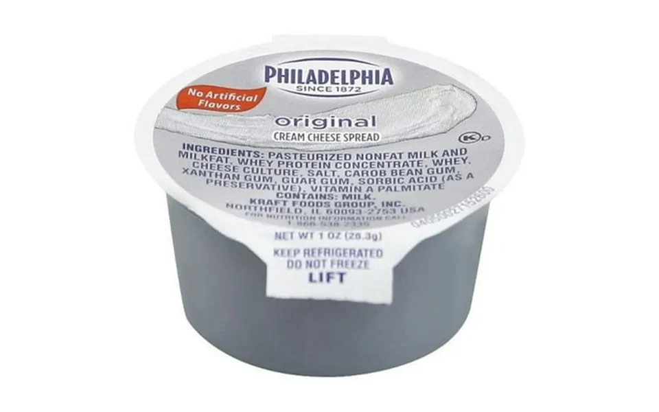 Features: philadelphia original cream cheese spread 1 oz. Cups 100 per case are convenient for commercial kitchens restaurants cafeterias concession stands takeout delivery and more....show more