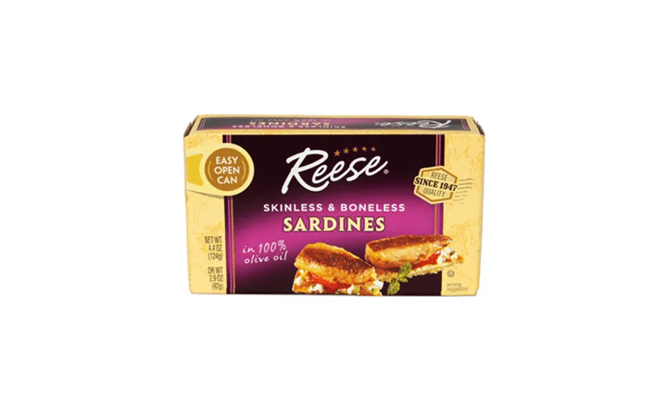 Reese Skinless & Boneless Plain Sardines 4.4 Oz 100% Olive Oil Cardboard Box