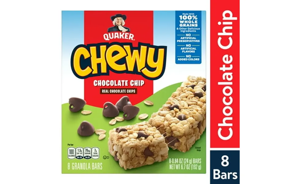 Nothing gets chocolate lovers cheering like a chocolate chip chewy bar from quaker. Every chewy bite is packed with real mouth-watering chocolate chips the kids...show more