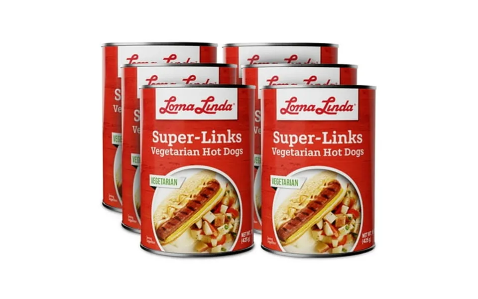 Super links 15 oz. Pack of 6 Meatless hot dogs Vegetarian 40% less fat than beef hot dogs. Made with vegetable protein and egg whites....show more