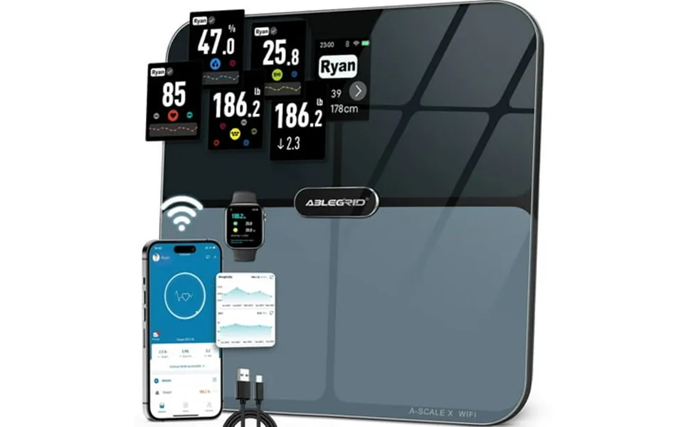 Main features: 16 body composition analysis: our weight scale measures 16 key physical metrics including body fat heartrate bmi muscle rate body water bone mass...show more