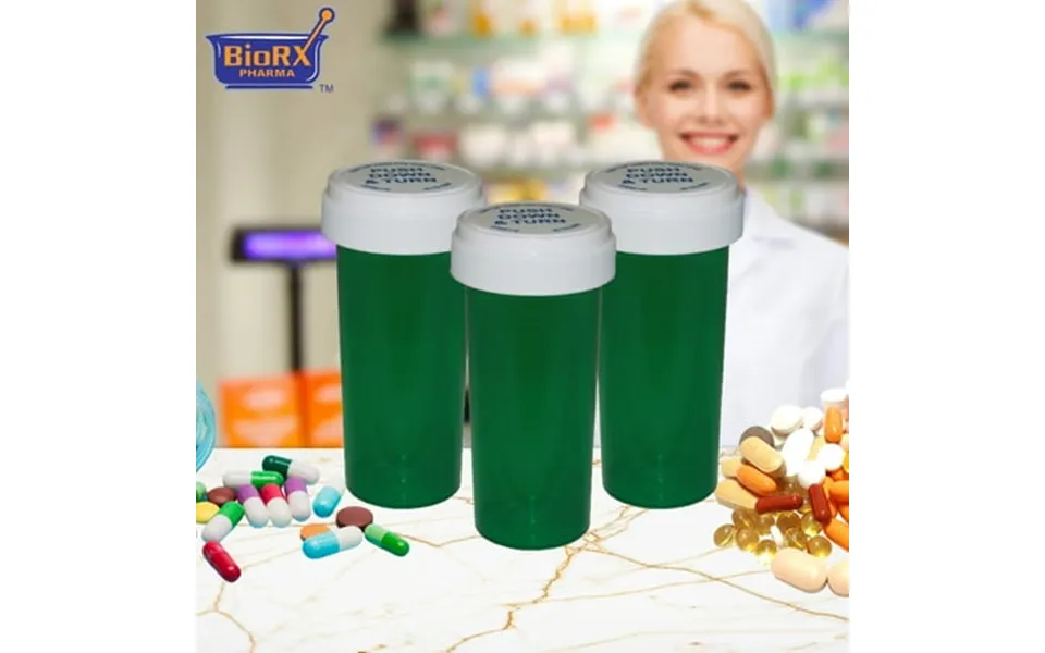 Green 40 Dram 16 Pcs prescription vial medicine container pill bottle by biorx sponix ...show more