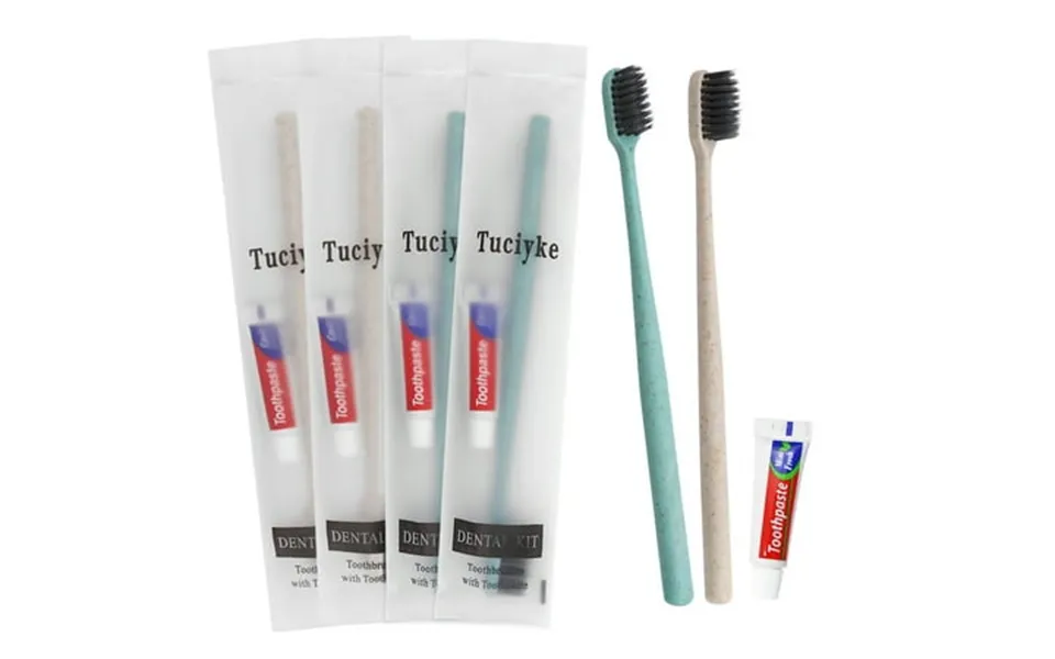 Product name: disposable toothbrush and toothpaste kit material: straw color: green apricot size: 22*4.5Cm 8.7*1.8Inches packaging: individually packed package included 30* green travel toothbrush and...show more