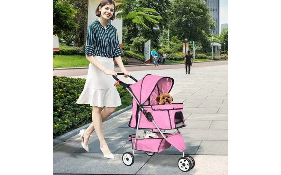 Introduction: our folding pink pet stroller has a large and comfy room.There is also a storage basket under the dog stroller for your pet with...show more