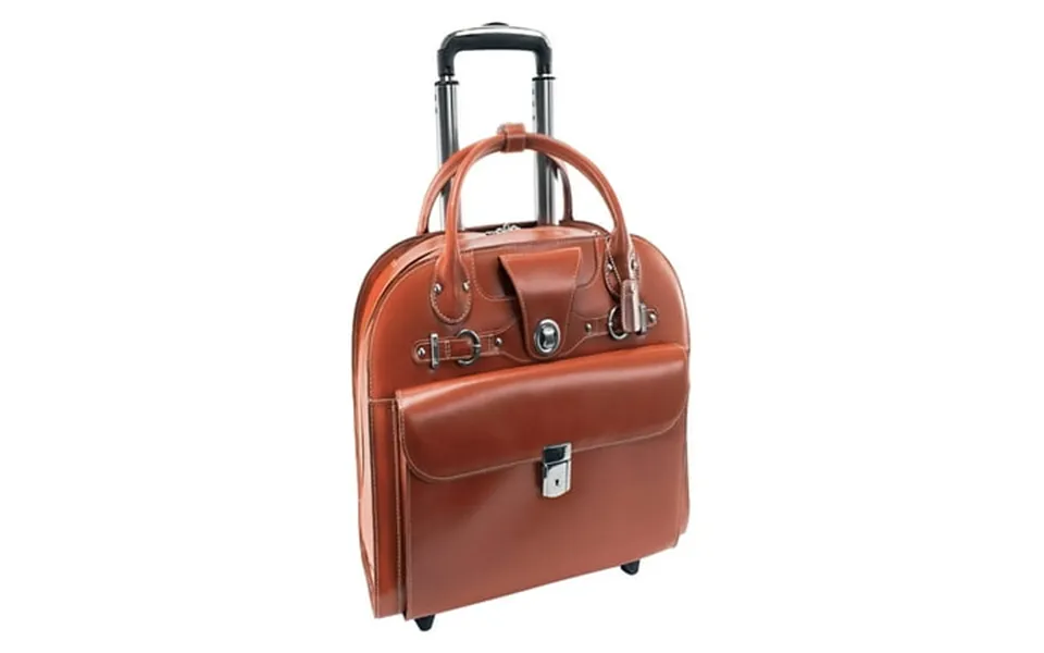 Quick access front pocket is secured with a key lock. Interior organizer with storage space for media devices business cards key holder and pens. Double...show more