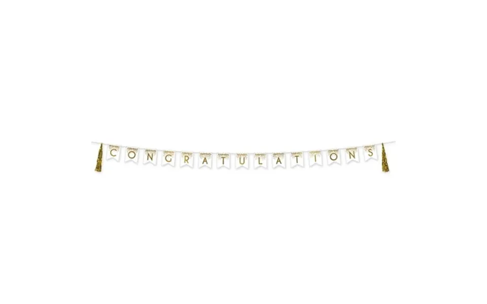 Each congratulations tassel streamer measures 13 inches tall x 156 inches wide. It is made of white boardstock w shaped pennants w gold foil-stamped letters...show more