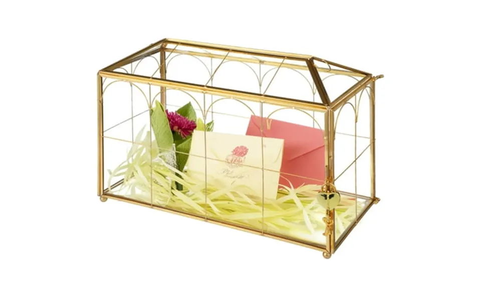 Color:gold material:metal glass product size: 12.6 X 5.9 X 9 in package includes:glass wedding card box *1 note: Please refer to the measurement. Tiny measuring...show more