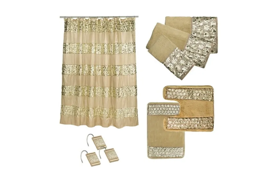 Bath Accessory 7pc Curtain Sets Curtain & Hooks 3pc Towel Set Contour Mat Rug Gold
