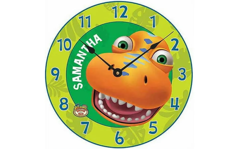It s buddy from dinosaur train smiling a big hello from a custom wall clock. Buddy encourages your youngster to learn to tell time with...show more