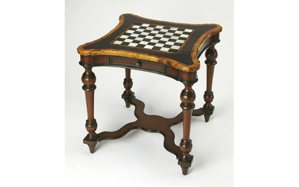 Play games in style with this exquisitely designed and handcrafted game table. Its mahogany finished turned legs and carved stretcher set the stage for the...show more