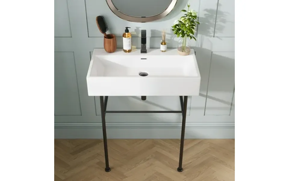 Crafted from premium ceramic our console sink offers outstanding scratch and stain resistance ensuring lasting beauty. Its spacious design accommodates three users at once perfect...show more