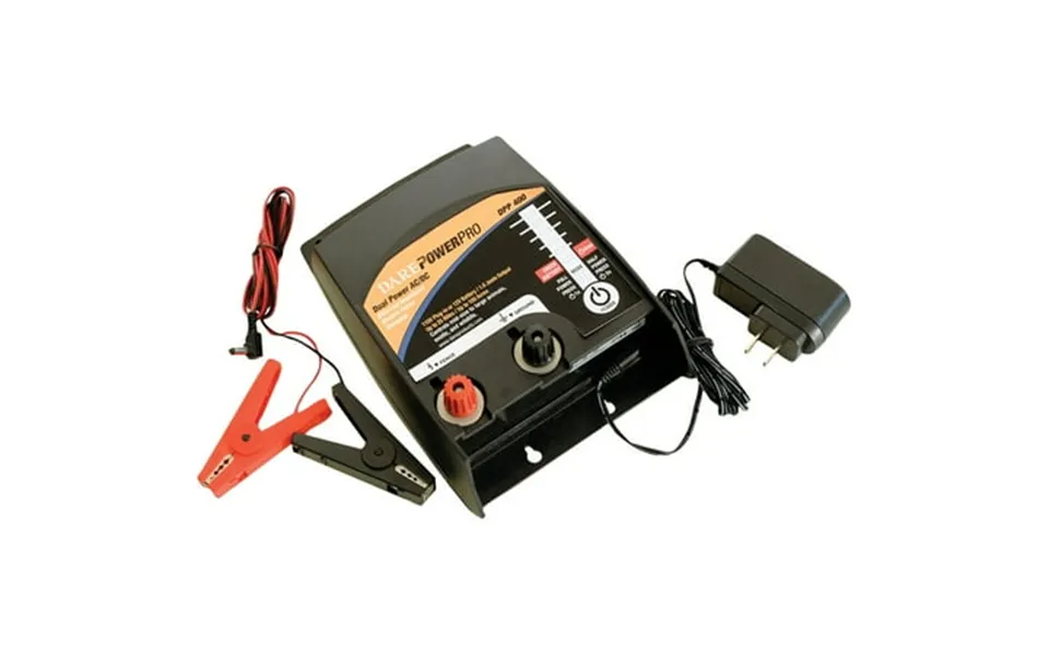 Ac dc dual power electric fence energizer. Runs off of 110-volt plug-in or 12-volt battery clips included. Features full and half power battery check and...show more