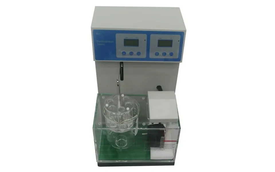 Parameter: name: equipment tablet disintegration tester packing specifications:20.87 *14.57 *16.14 37*41*53Cm gross weight: 12.18Kg number of lifting baskets:1 basket glass tube number: 6 flat bottom...show more