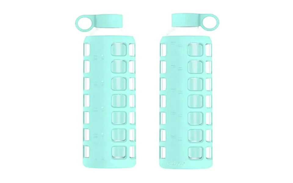 Purifyou Glass Water Bottle With Ultra-soft Silicone Sleeve & Stainless Steel Lid Insert Set Of 2 Glow In The Dark 32 Oz