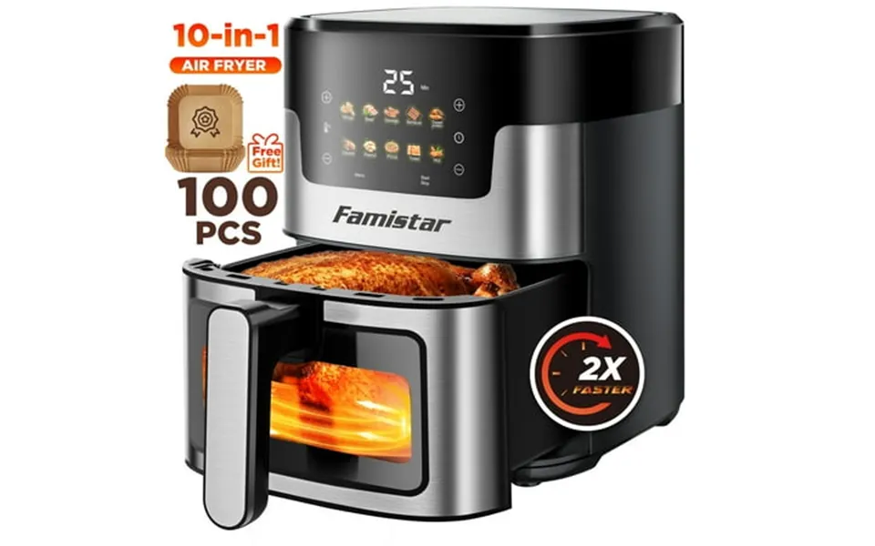 Famistar air fryer large 7.5Qt beautiful 10-in-1 airfryer oilless electric hot oven multifunctional cooker with digital led touchscreen 1-hour timer max 400 temperature 100pcs air...show more