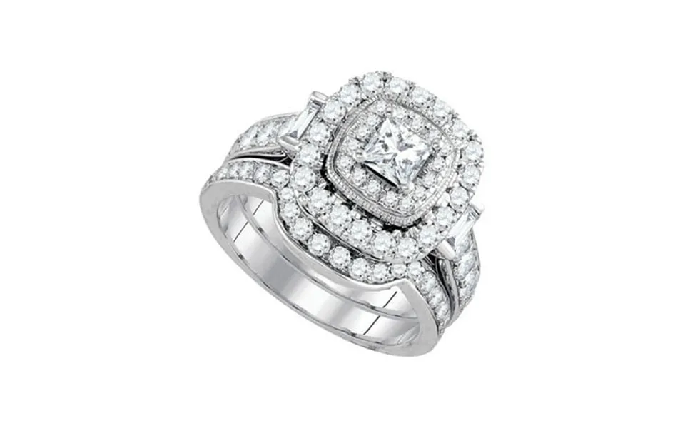 14Kt white gold princess diamond halo bridal wedding ring band set 2 cttw Brand: Diamond Princess