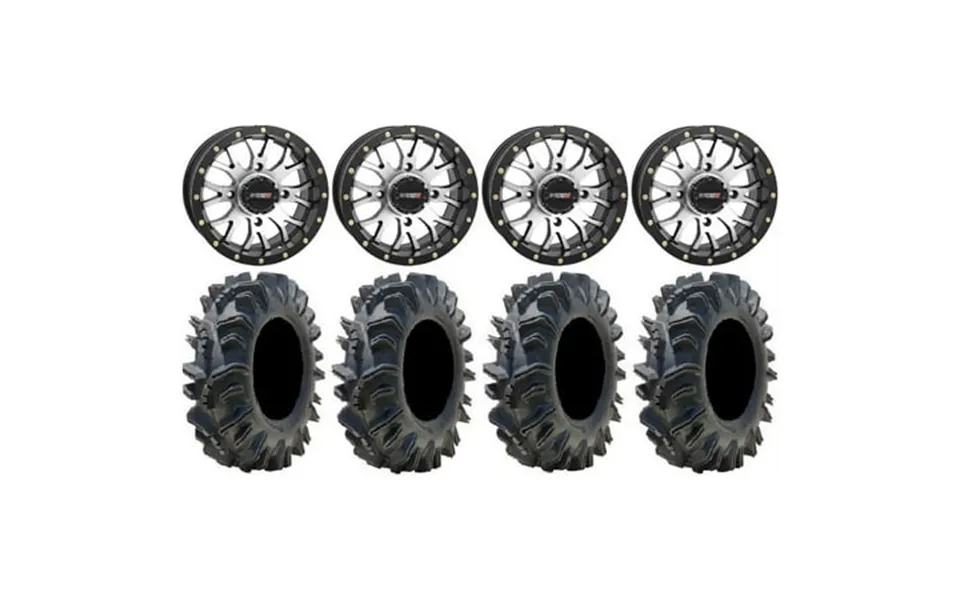 This wheel and tire kit includes: 4 system 3 st-3 14x7 atv utv wheels Machined 4 156 5 2 14s3-1056 4 super atv terminator 6ply...show more