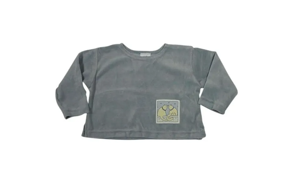 Mulberribush Toddler girls long sleeve hip velour top light blue hip length side waist slits 2 cats patch 75% cotton 25% polyester made in usa...show more