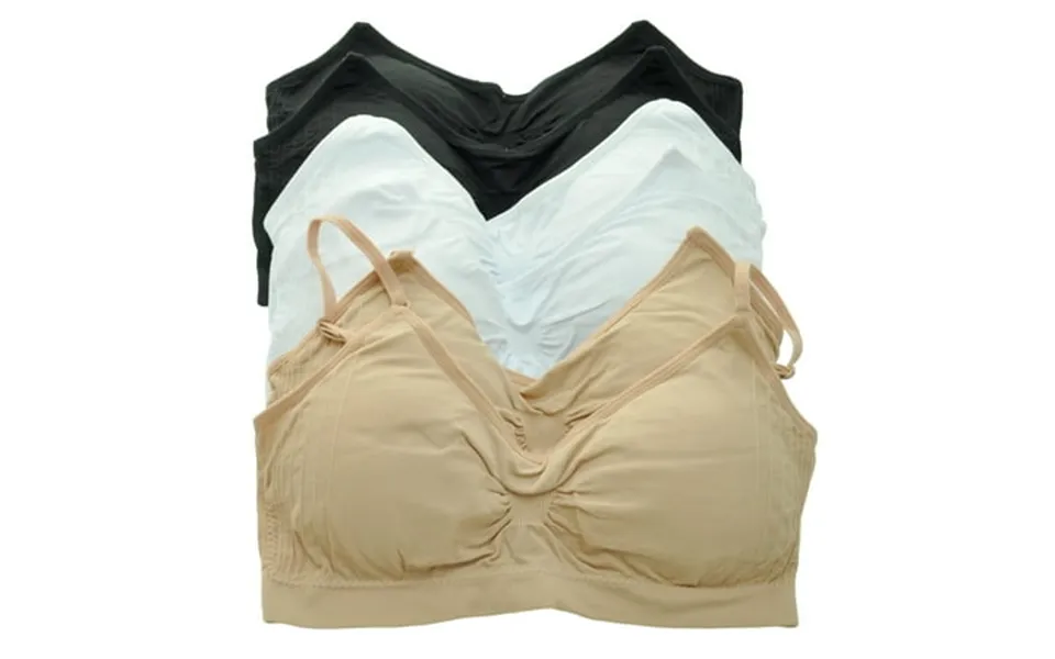 These seamless bralettes feature ruching in the front with removable padded cups. They are wireless and come with adjustable straps for additional support. Available in...show more